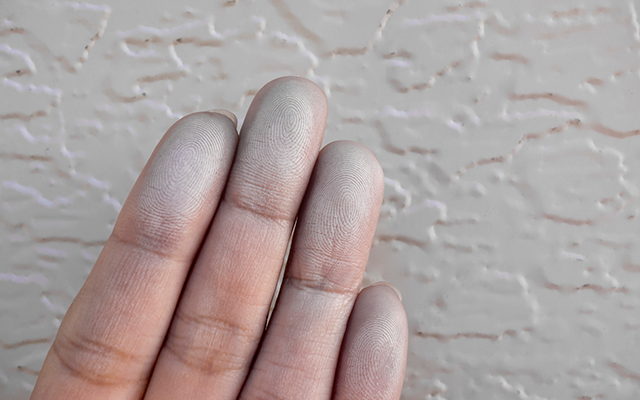 このような現象をチョーキング現象と言います。白い粉は塗料に含まれる顔料が粉状になったもので、紫外線や風雨にさらされたことが原因で、塗膜の表面が劣化した"サイン"です。外壁の防水効果が切れたというサインでもありますので、ぜひ塗り替えをご検討ください。